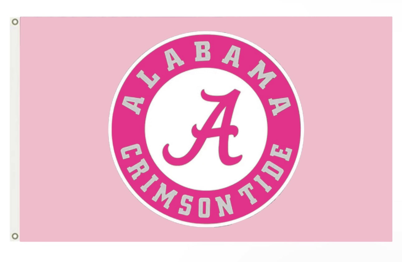 Looking for a pink University of Alabama flag? Show your Crimson Tide pride with this awesome pink flag featuring the iconic University of Alabama logo. Whether you're tailgating, decorating your dorm, or just want to display your love for the Tide, this flag is a must-have! Roll Tide! 🐘🌸