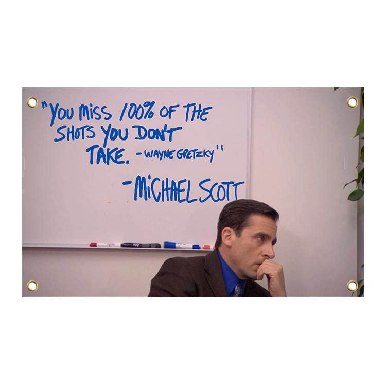 Get ready to be inspired by the legendary Wayne Gretzky with this motivational flag! 🏒🔥 Featuring the iconic quote, "You miss 100% of the shots you don't take," this flag serves as a constant reminder to seize every opportunity and go for your goals. Hang it up and let it motivate you to take risks, embrace challenges, and never hold back. Show your determination and passion for success with this empowering flag! 🚀💯