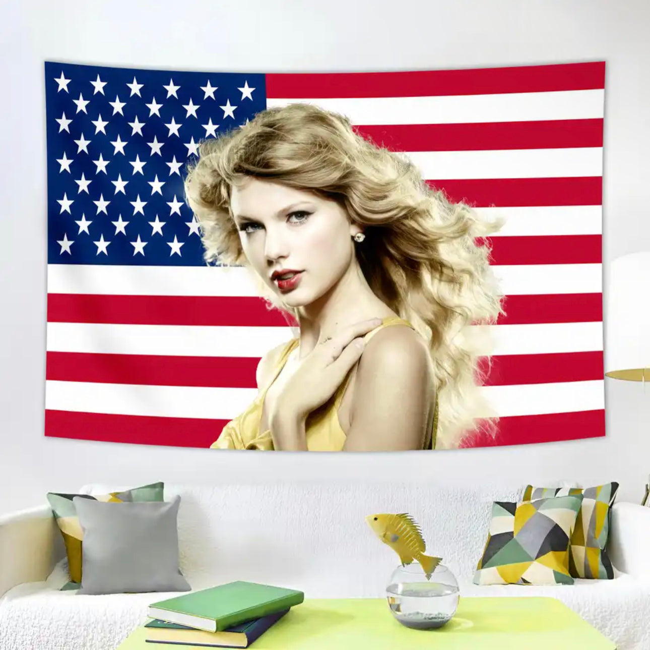 Introducing our Taylor Swift Graphic/Quote Flag, featuring iconic visuals and inspiring lyrics! 🎤🚩 Show your love for Taylor Swift with this 3x5ft flag that beautifully showcases her talent and empowering words. 🌟🎶 Hang it up and let Taylor's music and message fill your space with positivity and inspiration! 🏳️🌈✨
