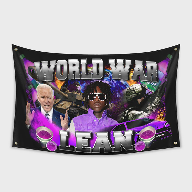 Step into peak internet absurdity with the World War Lean Meme Flag, a wild, over-the-top collage that blends global chaos with iconic meme energy. Explosions, soldiers, purple themes, surreal edits, and unexpected public-figure cameos all collide to create one of the most unhinged meme banners you can hang on your wall.